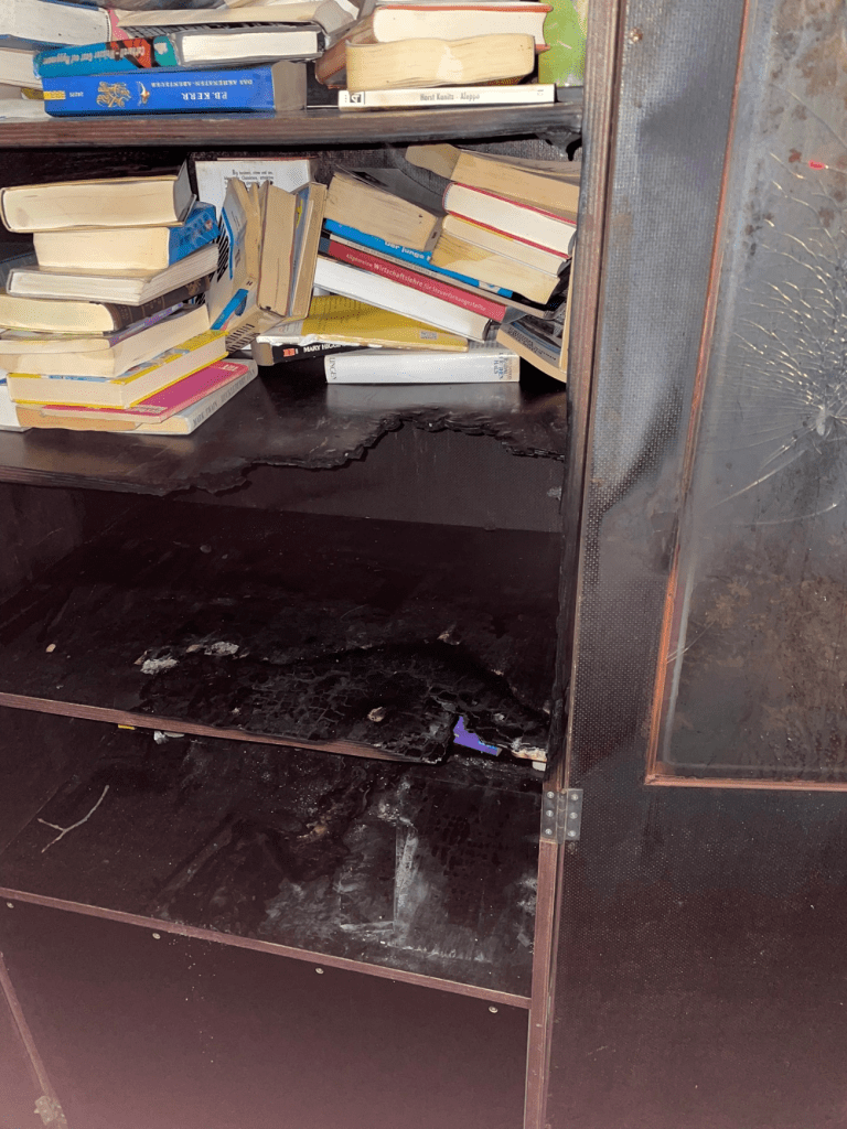 Dank des schnellen Eingreifens der Feuerwehr Ronnenberg konnte ein größerer Schaden verhindert werden. Trotzdem wurden dabei so gut wie alle Bücher zerstört und der Bücherschrank ist bis auf weiteres nicht nutzbar.